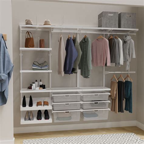- Shelves or drawers for folded clothing items like pants, shorts, and sweaters